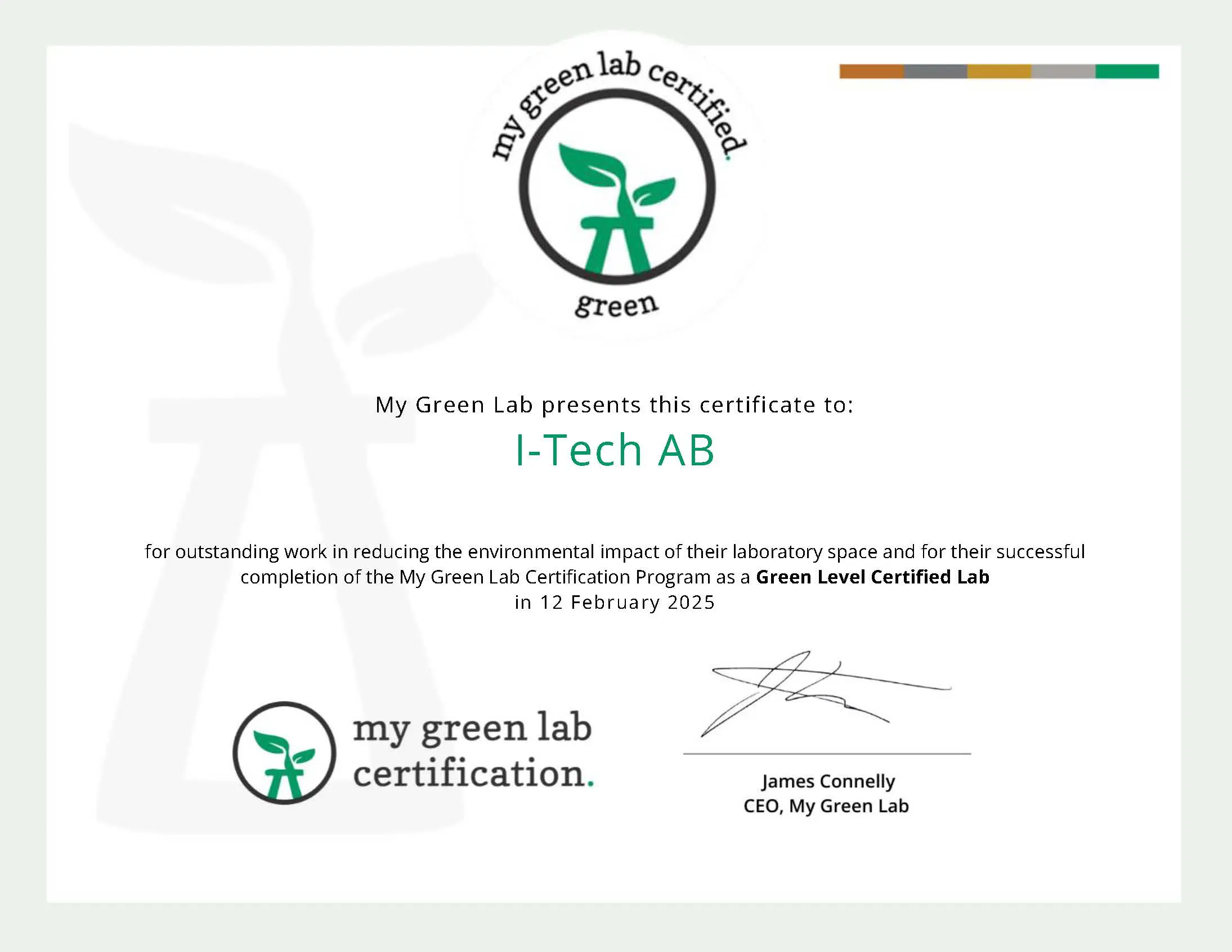 Every small step counts toward making science more sustainable. That’s why our laboratory has been awarded the My Green Lab Certification, recognising the actions we take to reduce our environmental footprint. From equipment and energy use to waste and procurement practices, this certification confirms that our lab meets the highest standards of sustainability—joining a global network of green labs driving positive change.