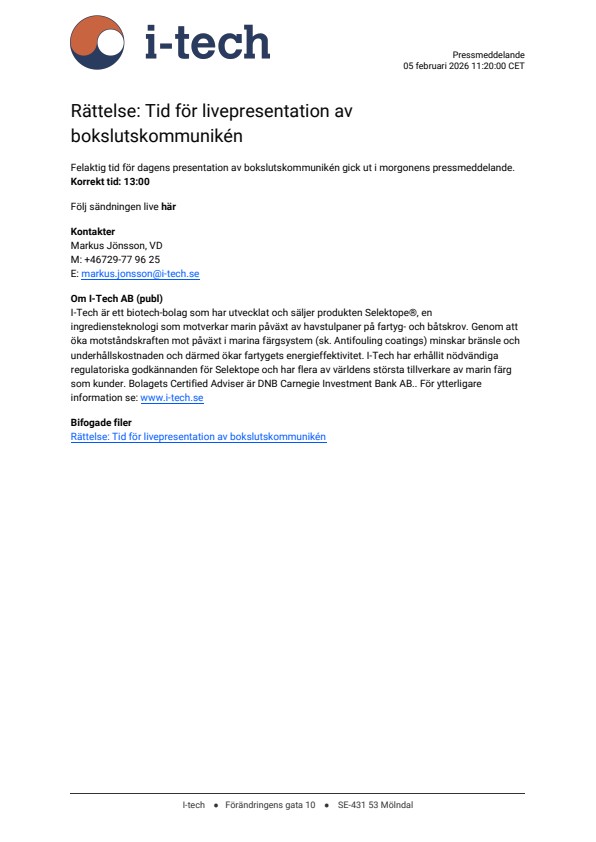 Rättelse: Tid för livepresentation av bokslutskommunikén